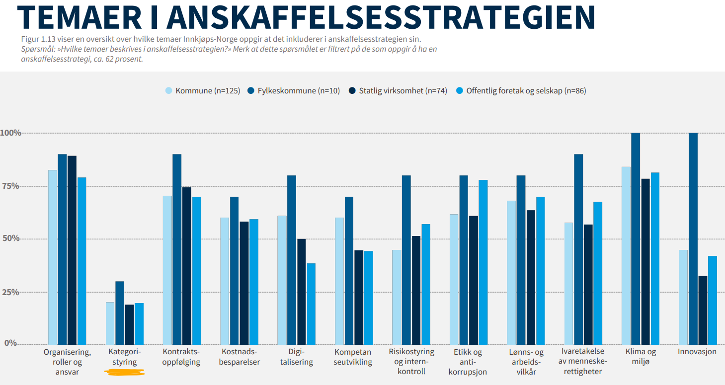 Anskaffelsesundersøkelsen 2024 ga oss et tydelig bilde av situasjonen i norsk offentlig sektor: kontraktsoppfølging er høyt prioritert, men kategoristyring er det knapt snakk om. Det kan virke paradoksalt. For du kan ikke følge opp kontrakter skikkelig hvis du ikke vet hva du har inngått avtaler på, med hvem og innenfor hvilke kategorier.
